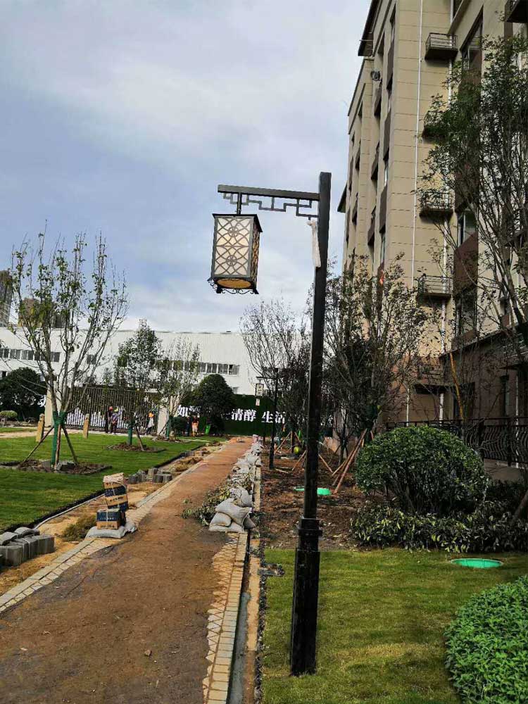 寶雞碧桂園庭院燈草坪燈項目是我們公司2018年7月完成的項目,燈具采用的是純黑方管燈桿,單挑臂造型光源,復古典雅,主體顏色與樓體顏色相呼應,在造型上和視覺上給人一種一體的美感。