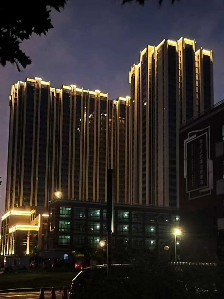 簡介—— 蔚來熙語項目位于航天城航天中路與神舟二路十字東南角,項目占地15畝,由2棟公寓及其商業生活配套組成,Art deco的建筑風格。我司承擔外立面亮化工程,對樓體頂部打亮及樓體線條的勾勒,做輪廓亮化,突出整體建筑,美化樓體。